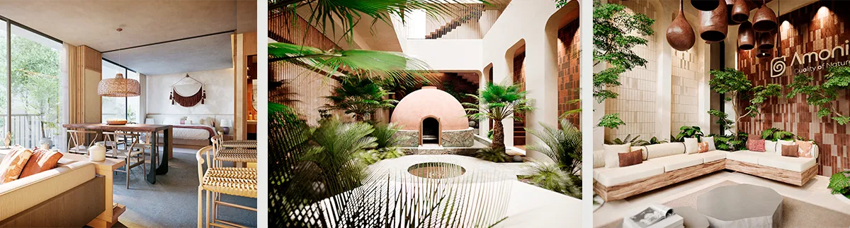 Lo que más me sorprendió de Amonit es la variedad y calidad de amenidades: la piscina, el spa, el co-working, hasta un temazcal y un pet garden. Cada rincón está pensado para disfrutar, para relajarse y convivir.